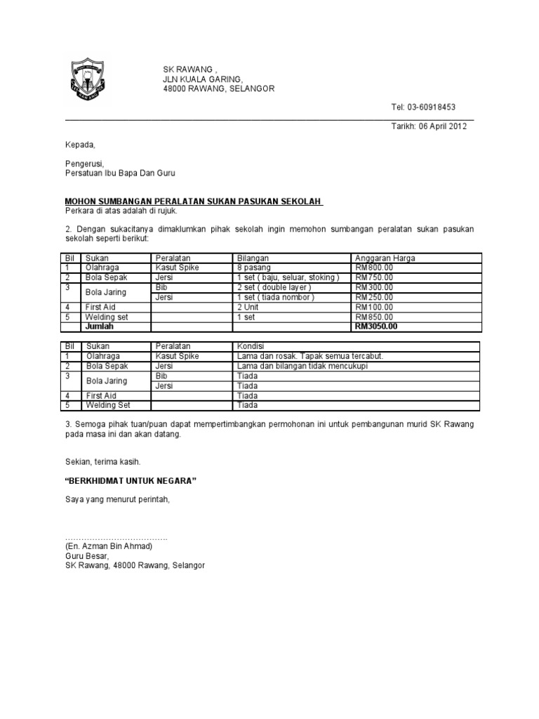 Surat Sumbangan Peralatan Sukan Pdf