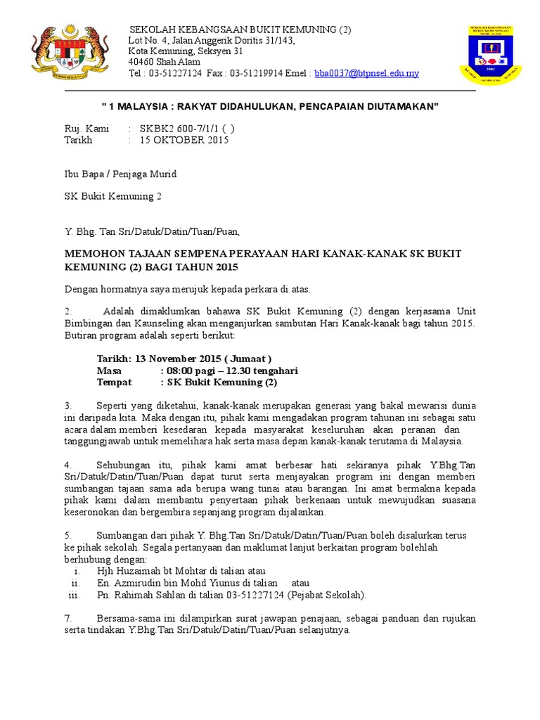 Surat Tajaan Hari Kanak Kanak Sekolah Pdf